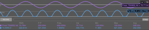 Although the output signal is sitting on zero volts rather than being centred on zero volts, the ERA seems to like it well enough.